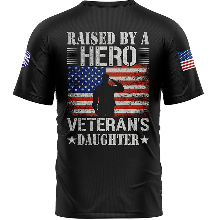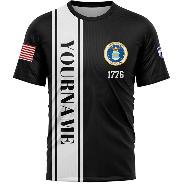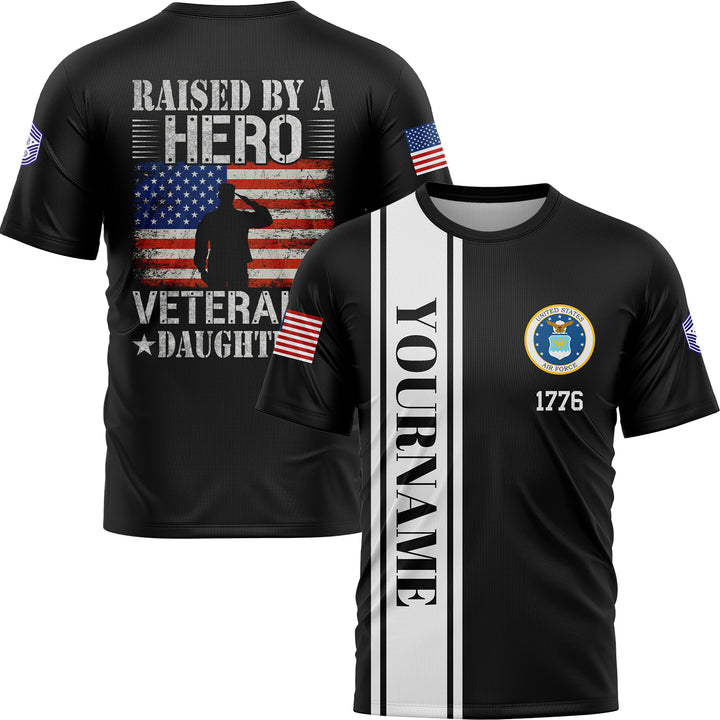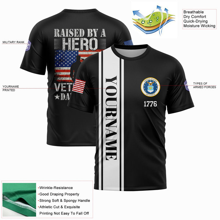 Custom Black Raised By A Hero 1776 Flag U.S Air Force Military Rank Name Veterans Day T-Shirt | Father's Day Gifts