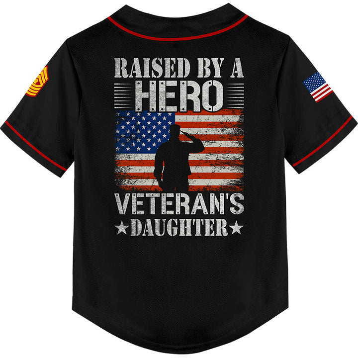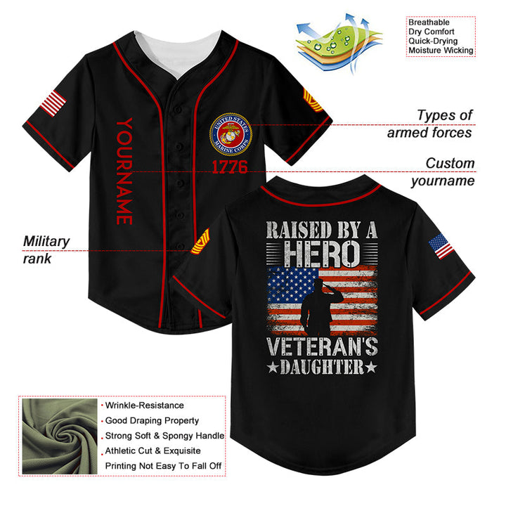 Custom Black Raised By A Hero 1776 Flag U.S Marine Corps Military Rank Name Veterans Day Baseball Jersey | Father's Day Gifts