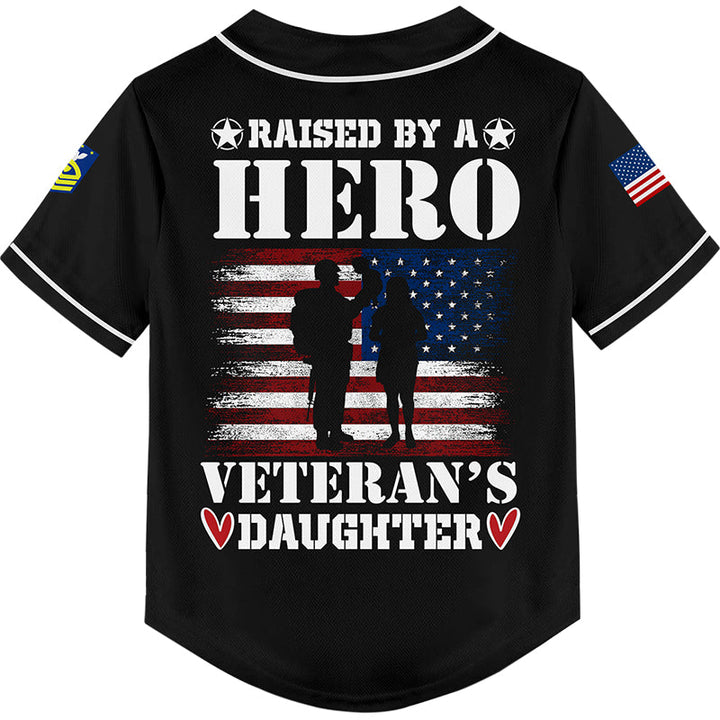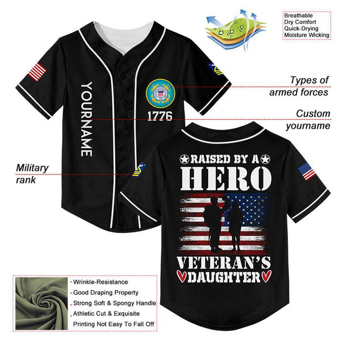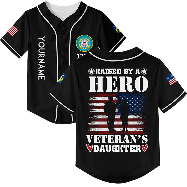 Custom Black Raised By A Hero Veteran's Daughter 1776 Flag U.S Coast Guard Military Rank Name Veterans Day Baseball Jersey | Father's Day Gifts