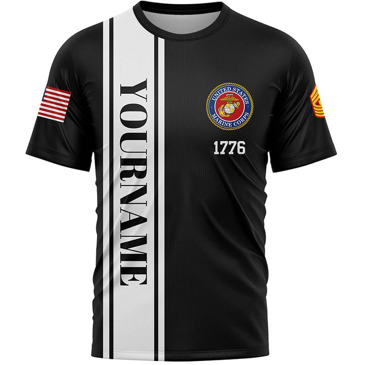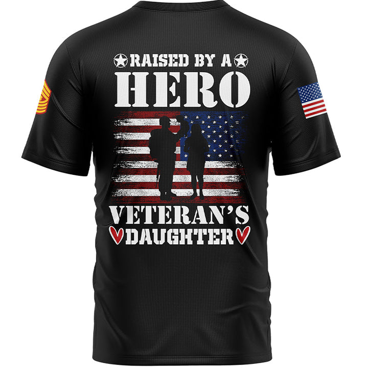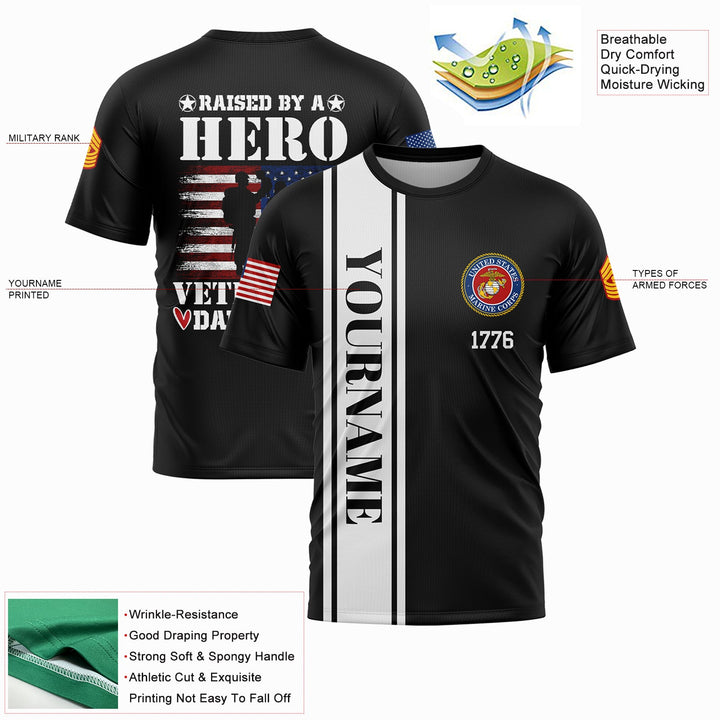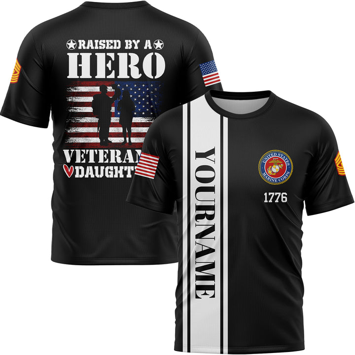 Custom Black Raised By A Hero Veteran's Daughter 1776 Flag U.S Marine Corps Military Rank Name Veterans Day T-Shirt | Father's Day Gifts