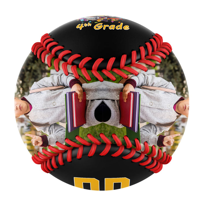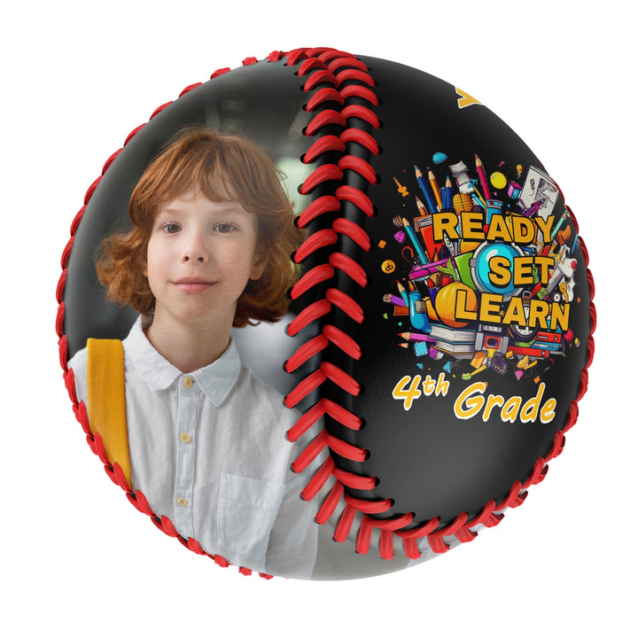 Custom Black Ready Set Learn Starting School 4th Grade Photo Baseballs