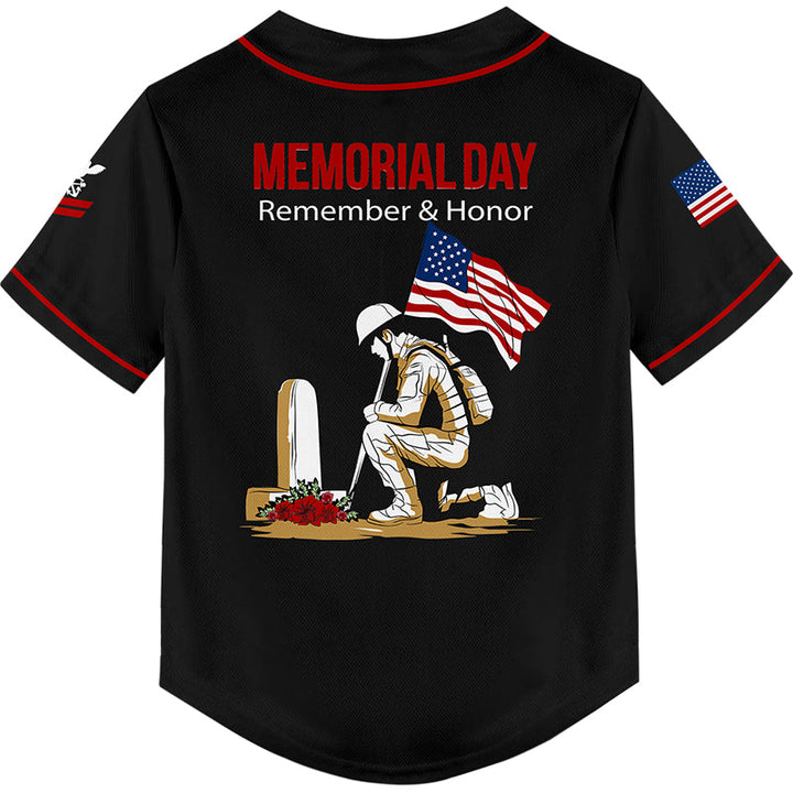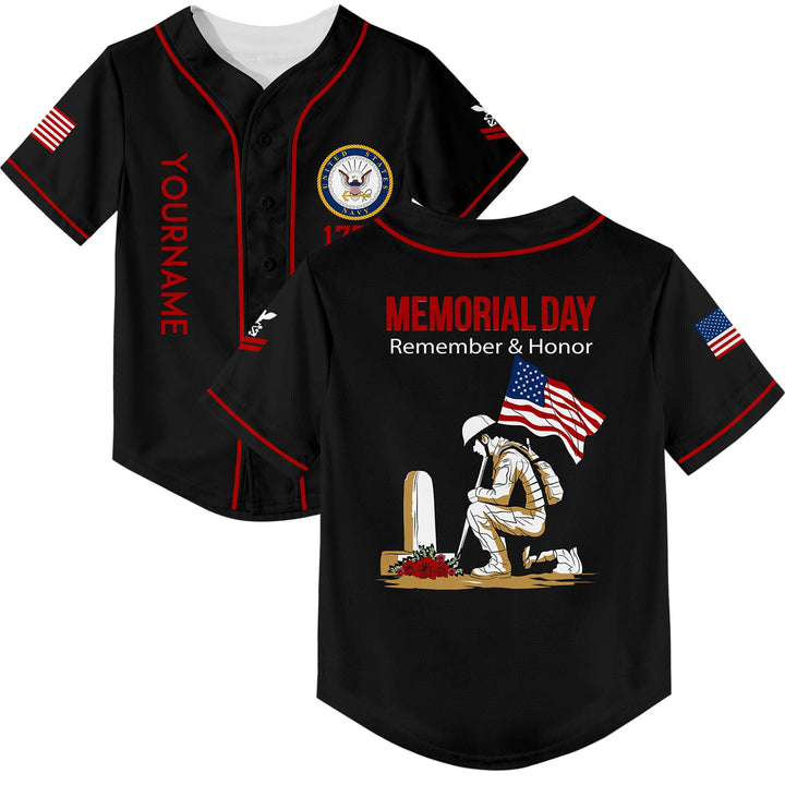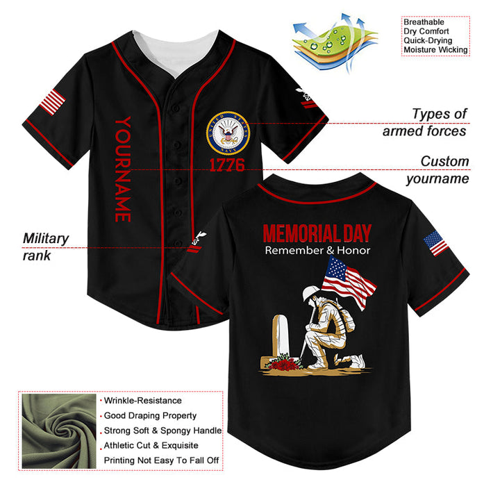 Custom Black Remember Honor 1776 American Flag U.S Navy Military Rank Name Memorial Day Baseball Jersey