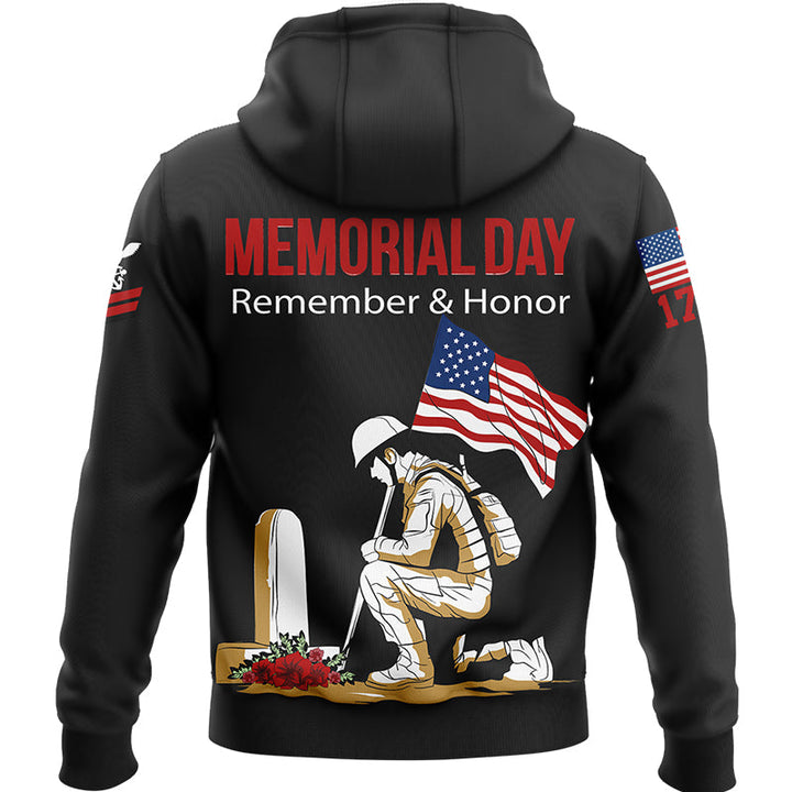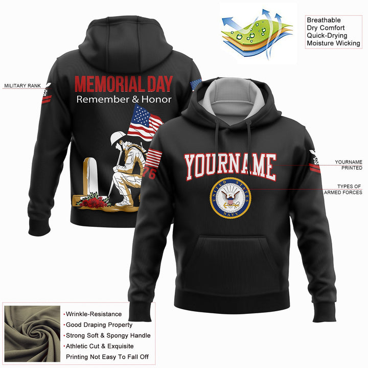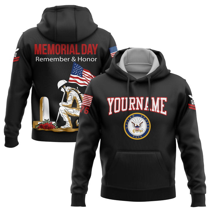 Custom Black Remember Honor 1776 American Flag U.S Navy Military Rank Name Memorial Day Hoodie