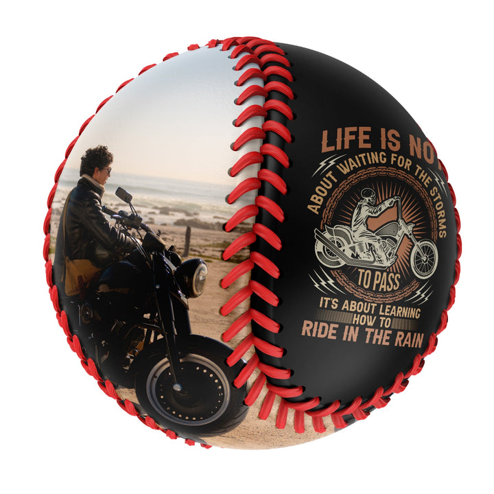 Custom Black Ride in the Rain Motorcycle Photo Baseballs