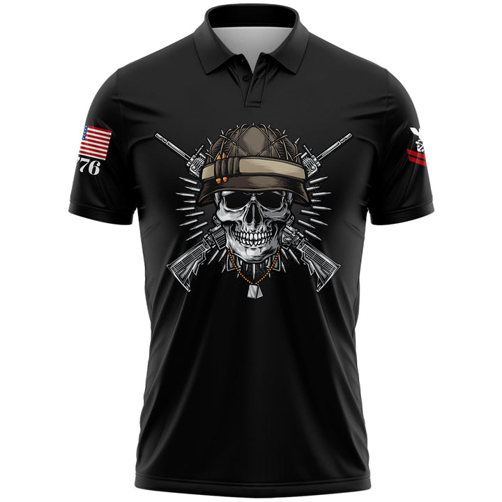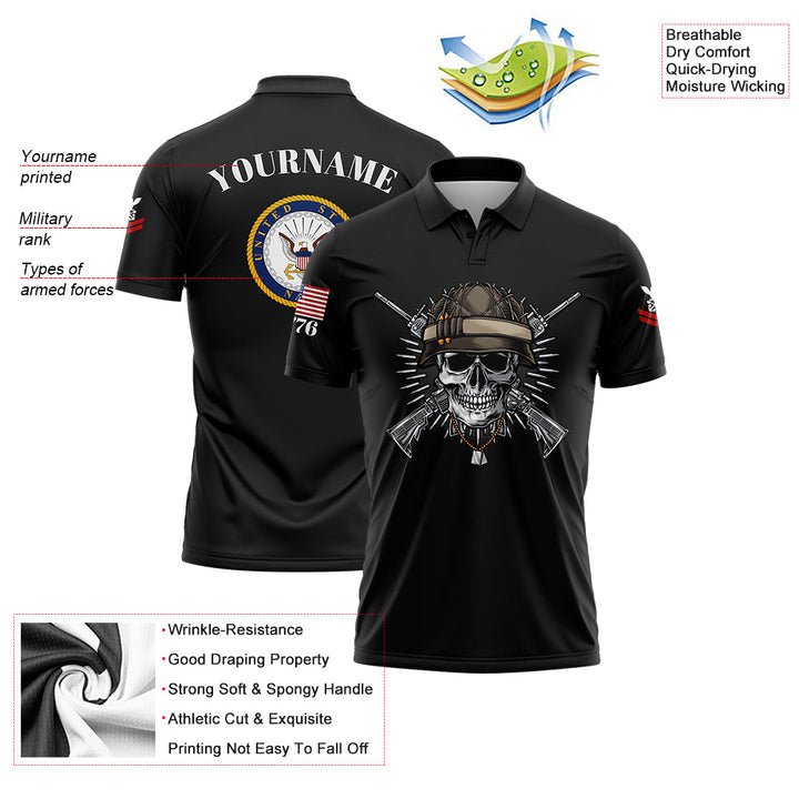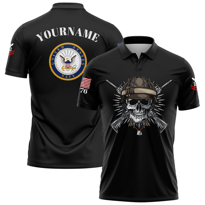Custom Black Skull 1776 U.S Navy Military Rank Name Golf Polo Shirt