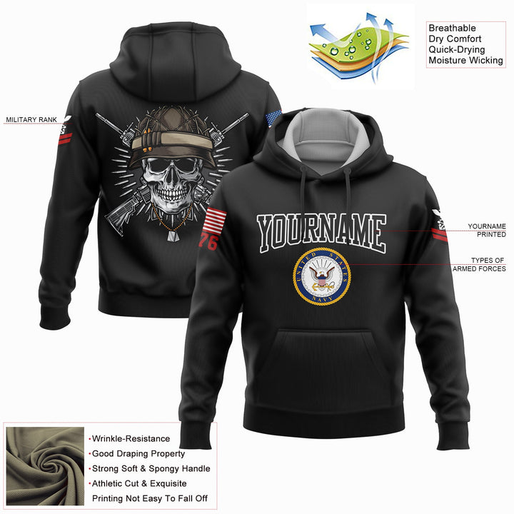 Custom Black Skull 1776 U.S Navy Military Rank Name Hoodie