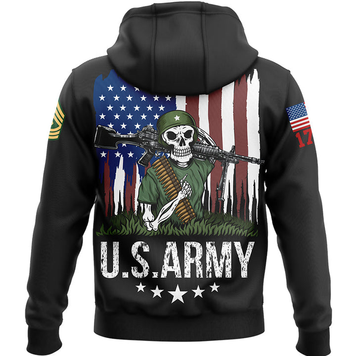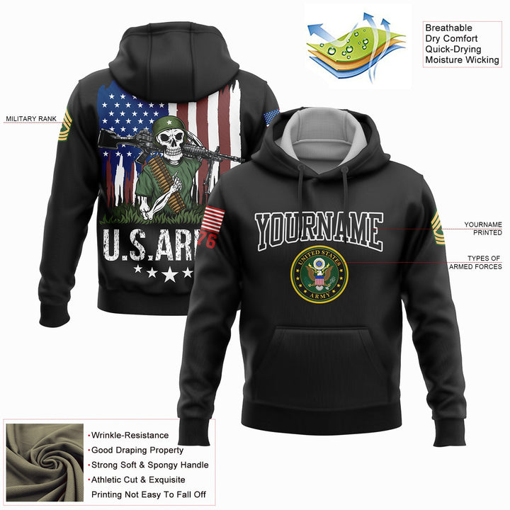 Custom Black Skull Soldier 1776 American Flag U.S Army Military Rank Name Hoodie