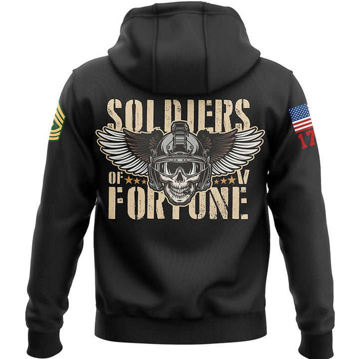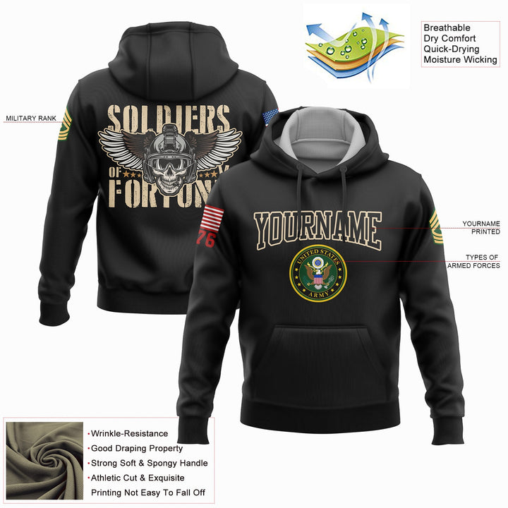 Custom Black Skull Soldiers Of Fortune 1776 U.S Army Military Rank Name Hoodie