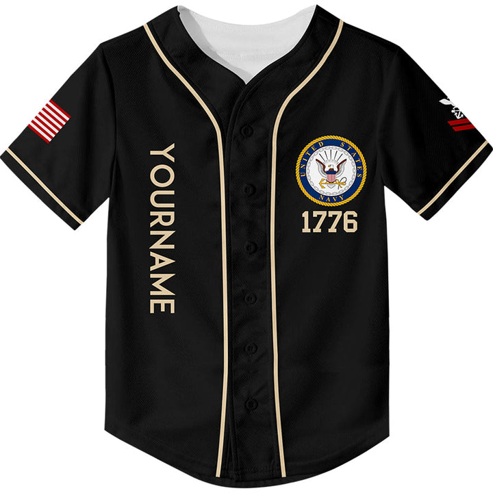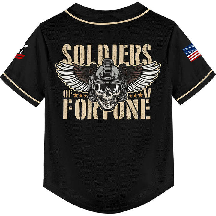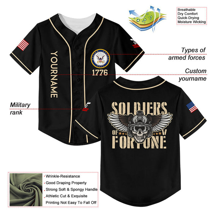 Custom Black Skull Soldiers Of Fortune 1776 U.S Navy Military Rank Name Baseball Jersey