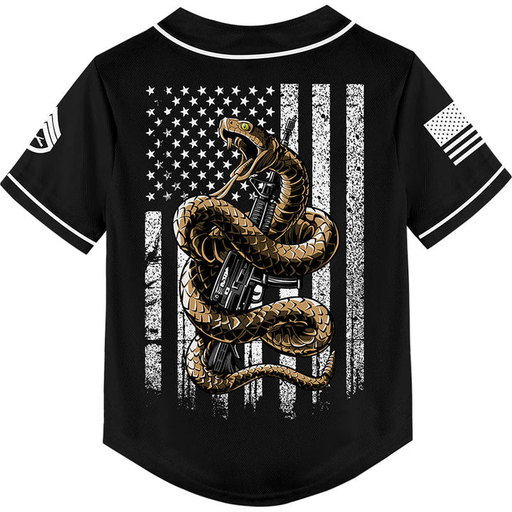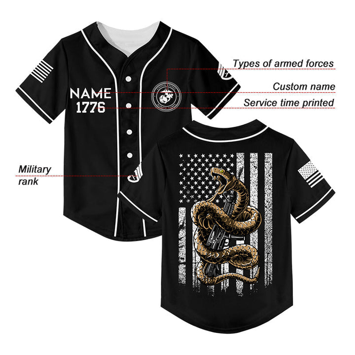 Custom Black Snake American Flag Military Rank Veteran Name Memorial Day Name Baseball Jersey