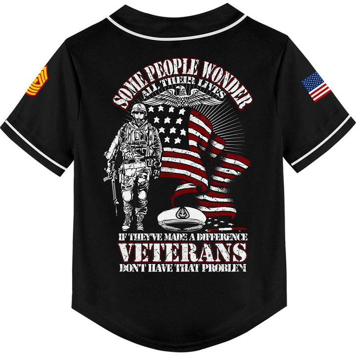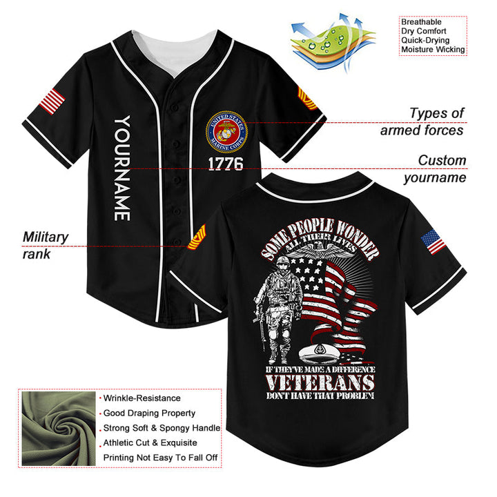 Custom Black Some People Wonder All Their Lives If They've Made A Difference Veterans Don't Have That Problem 1776 Flag U.S Marine Corps Military Rank Name Veterans Day Baseball Jersey | Father's Day Gifts