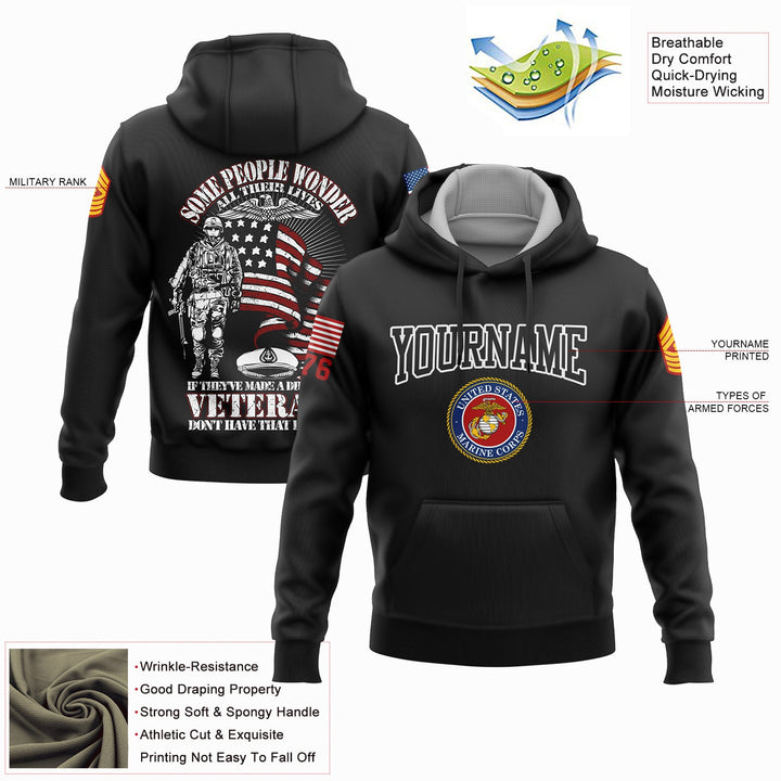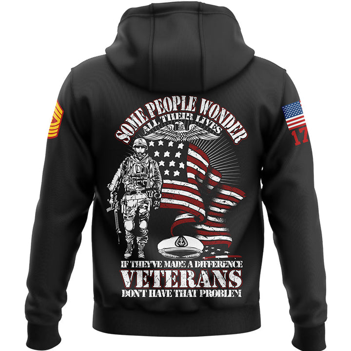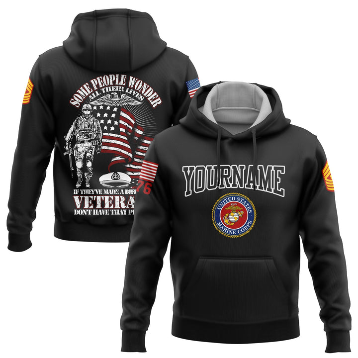 Custom Black Some People Wonder All Their Lives If They've Made A Difference Veterans Don't Have That Problem 1776 Flag U.S Marine Corps Military Rank Name Veterans Day Hoodie | Father's Day Gifts