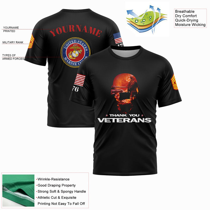 Custom Black Thank You Veterans 1776 U.S Marine Corps Military Rank Name T-Shirt