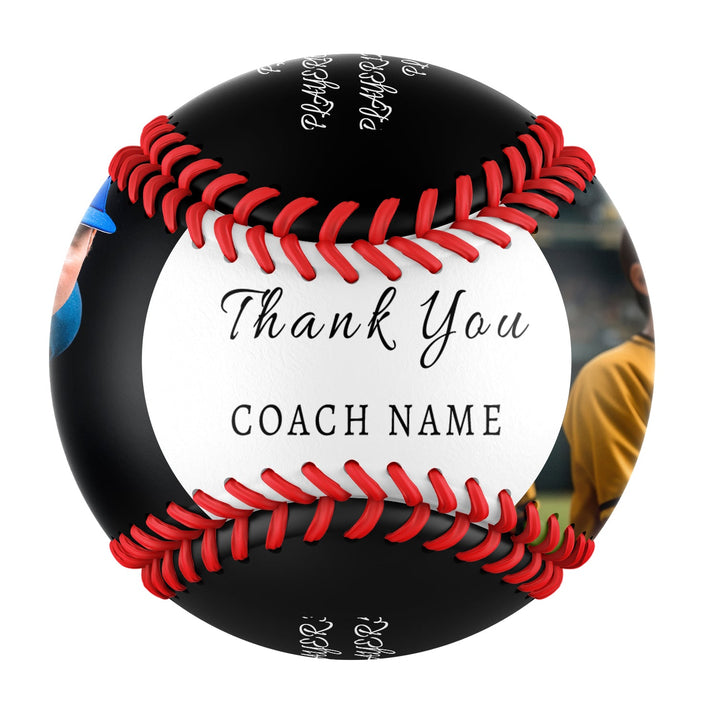 Personalized Black Thanks Coach Gift Photo Baseballs