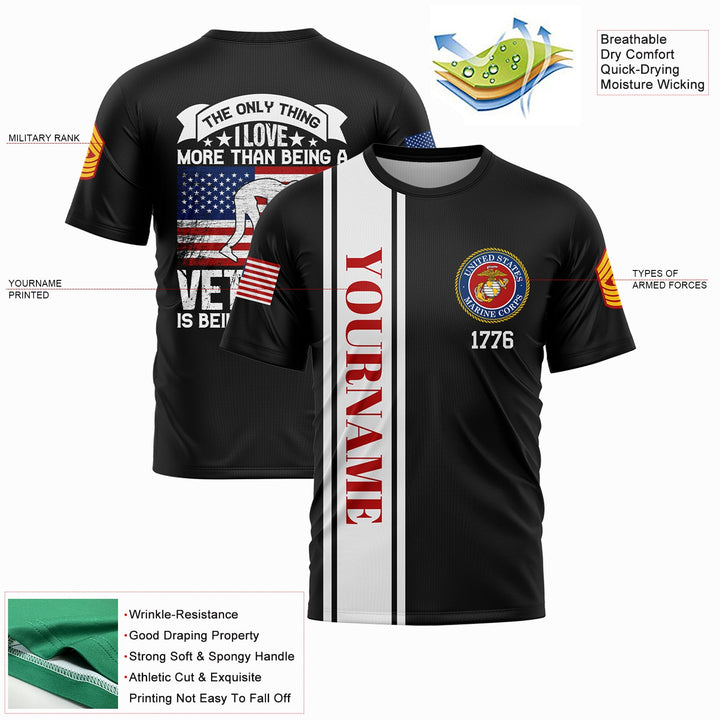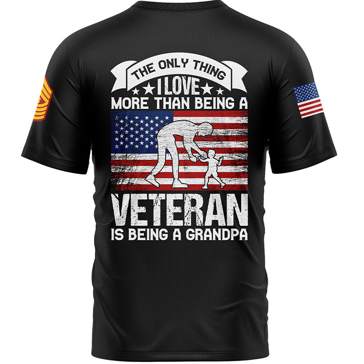 Custom Black The Only Thing I Love More Than Being A Veteran Is Being A Grandpa 1776 Military Rank Name Veterans Day T-Shirt