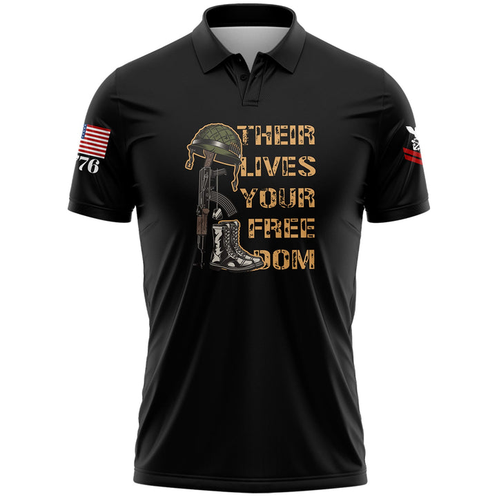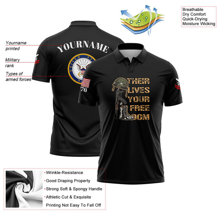 Custom Black Their Lives Your Freedom 1776 U.S Marine Corps Military Rank Name Memorial Day Golf Polo Shirt