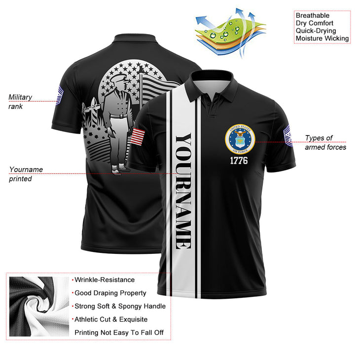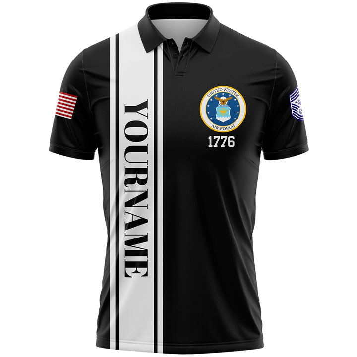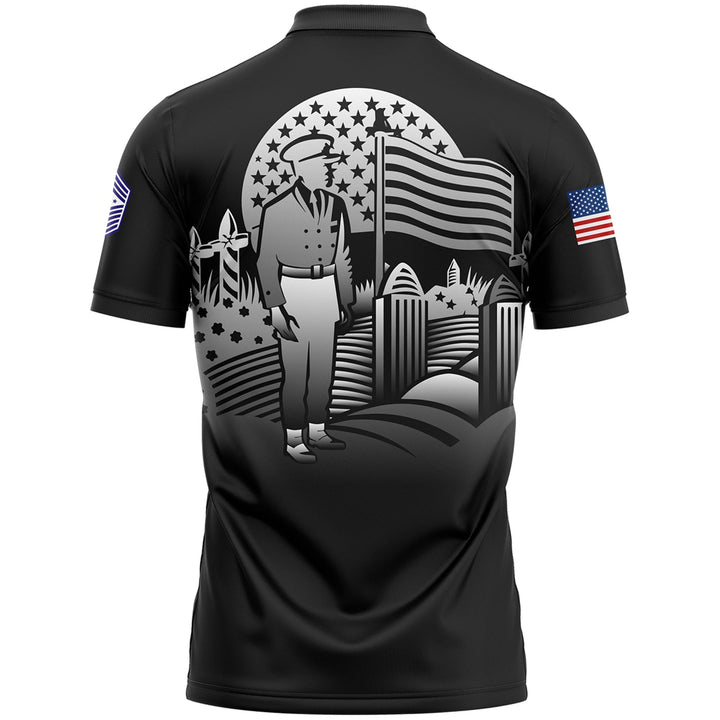 Custom Black Tombstone 1776 American Flag U.S Air Force Military Rank Name Memorial Day Golf Polo Shirt
