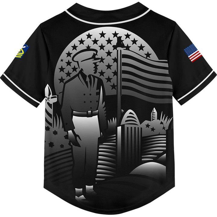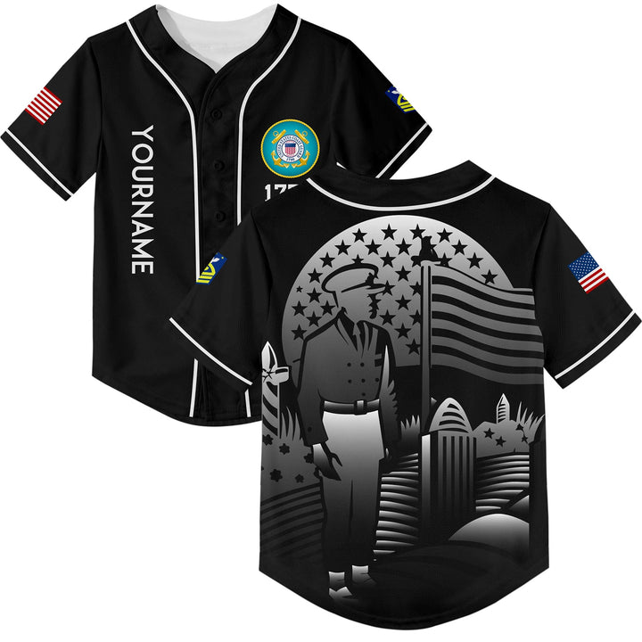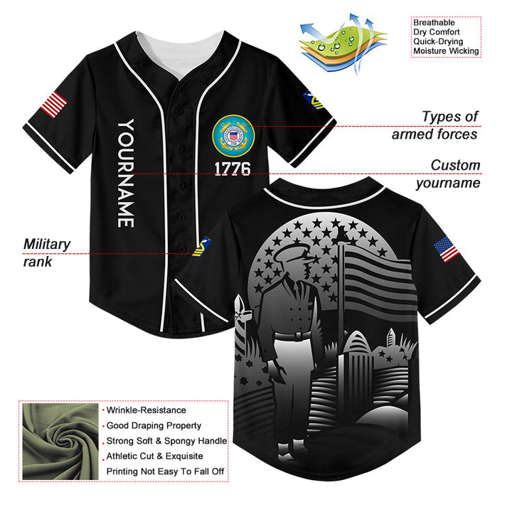 Custom Black Tombstone 1776 American Flag U.S Coast Guard Military Rank Name Memorial Day Baseball Jersey