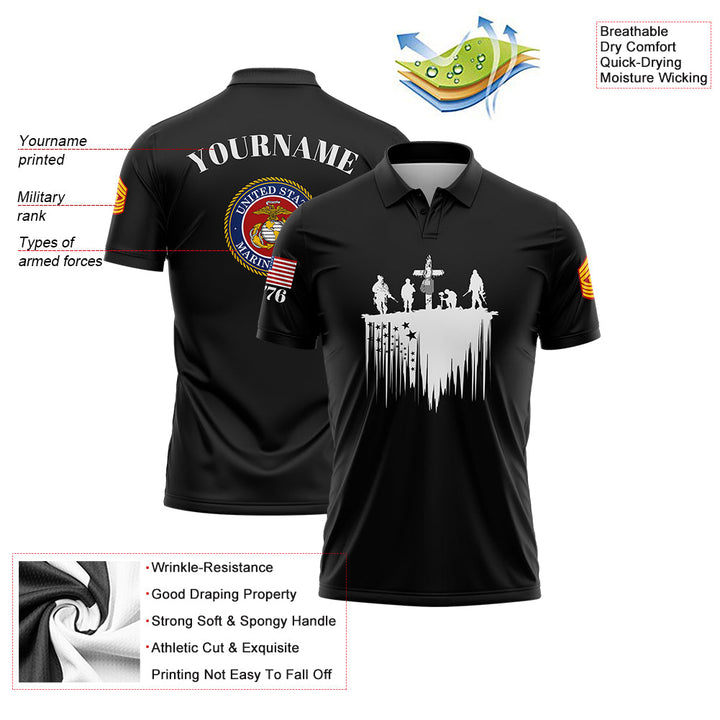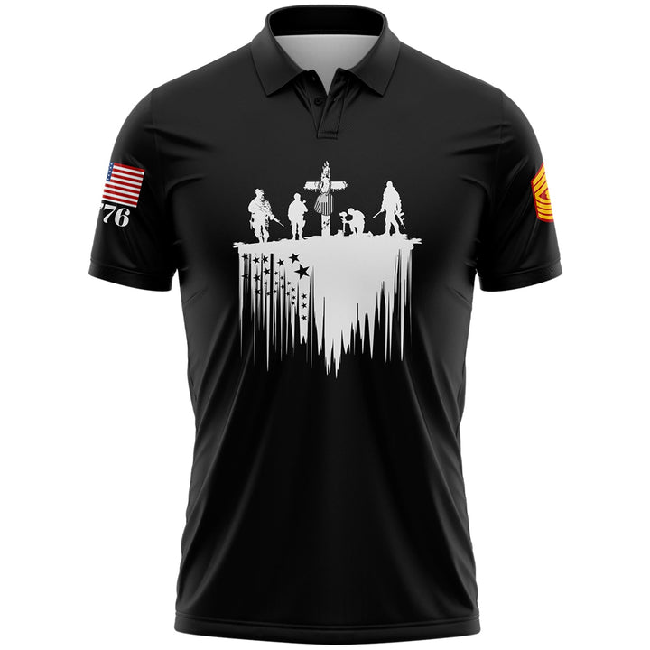 Custom Black Tombstone Dog tag 1776 American Flag U.S Navy Military Rank Name Memorial Day Golf Polo Shirt
