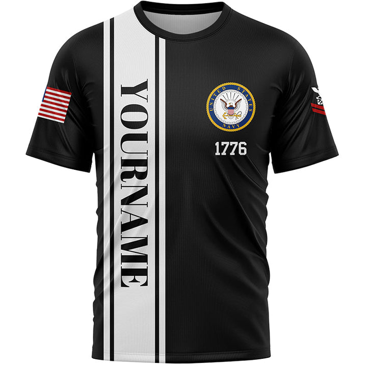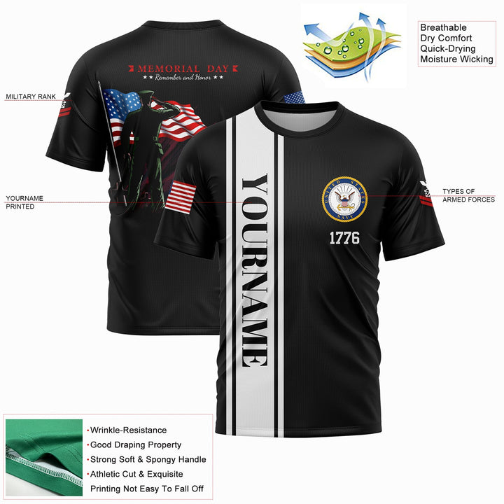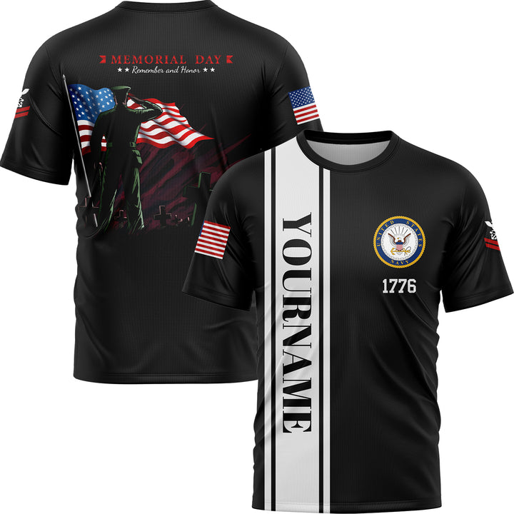 Custom Black Tombstone Remember And Honor 1776 American Flag U.S Navy Military Rank Name Memorial Day T-Shirt