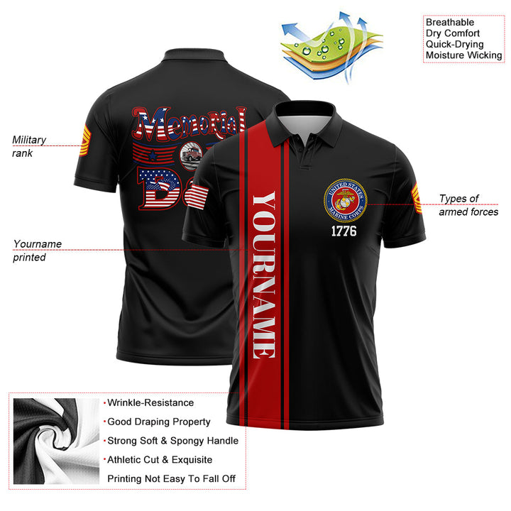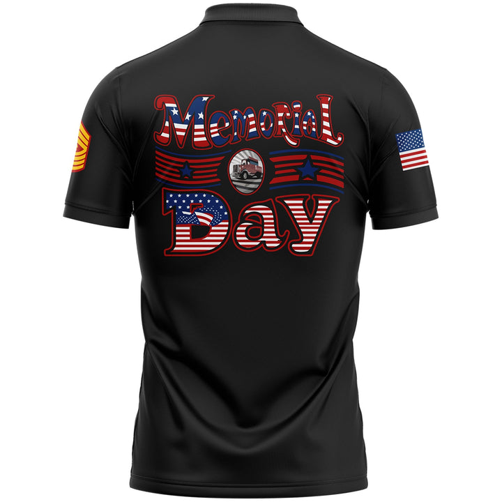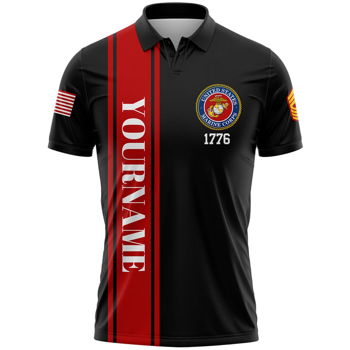 Custom Black Truck 1776 American Flag U.S Marine Corps Military Rank Name Memorial Day Golf Polo Shirt