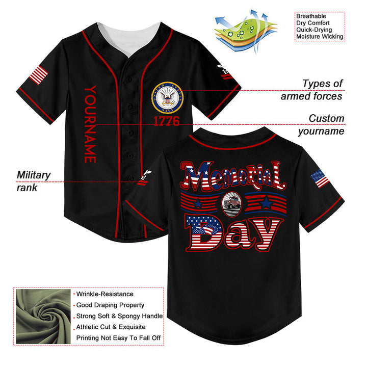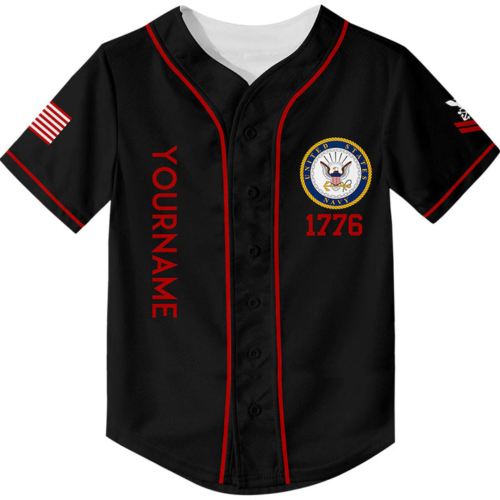 Custom Black Truck 1776 American Flag U.S Navy Military Rank Name Memorial Day Baseball Jersey