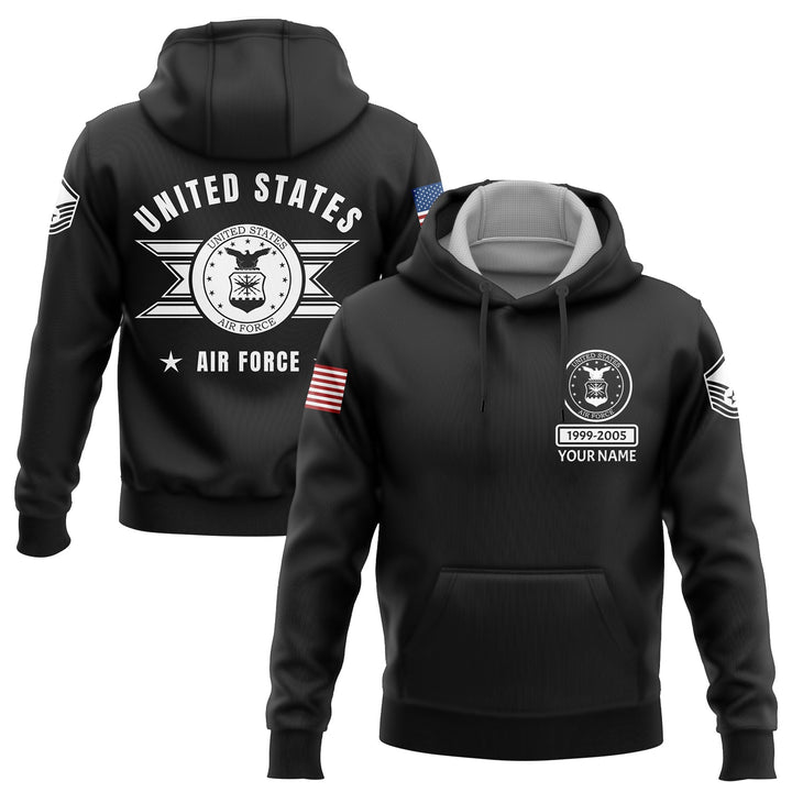 Custom Black U.S Air Force Military Rank Name Hoodie