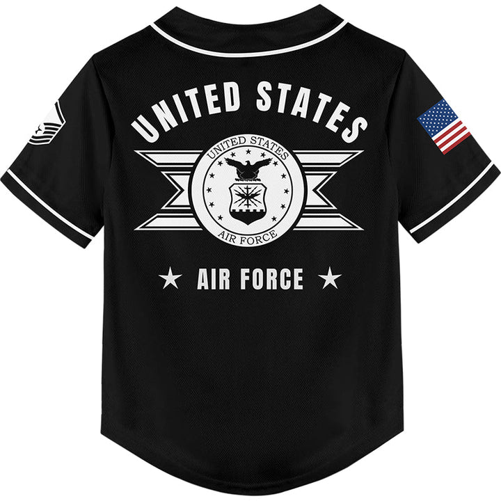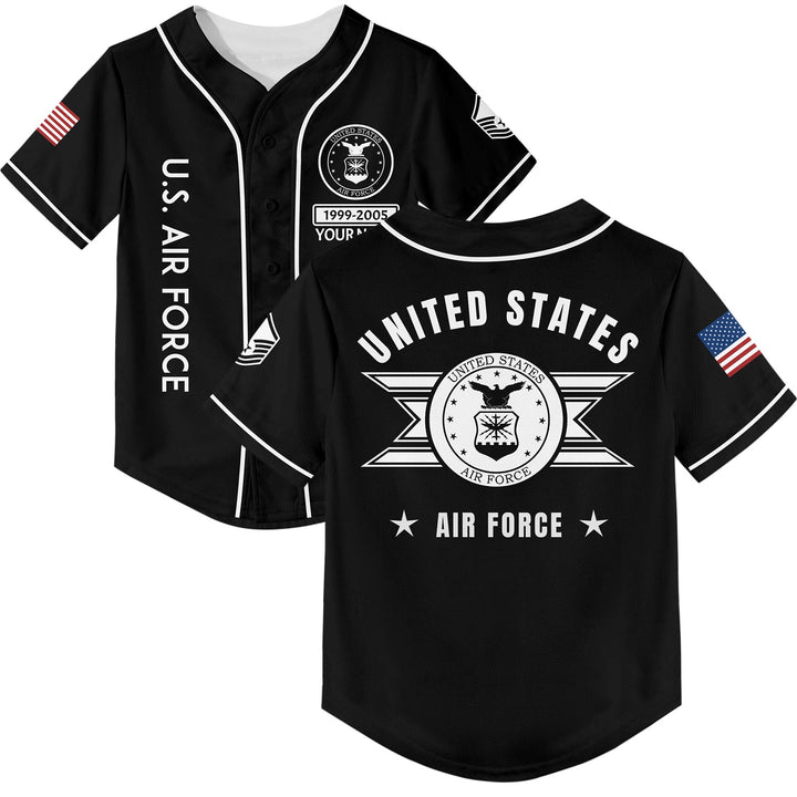 Custom Black U.S Air Force Military Rank Veteran Name Baseball Jersey