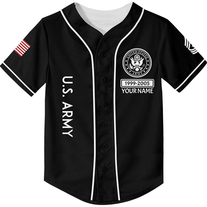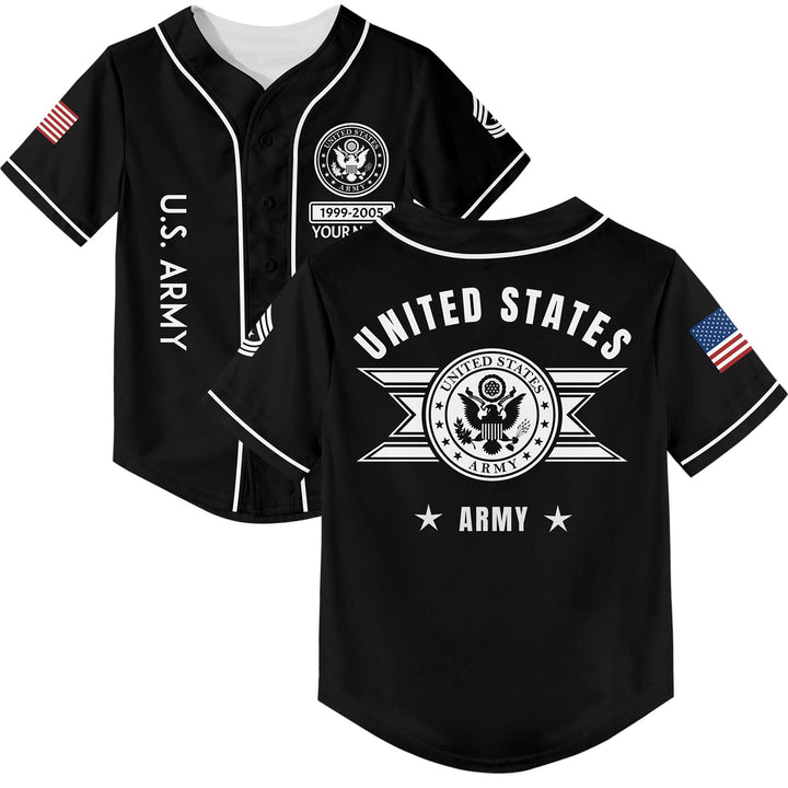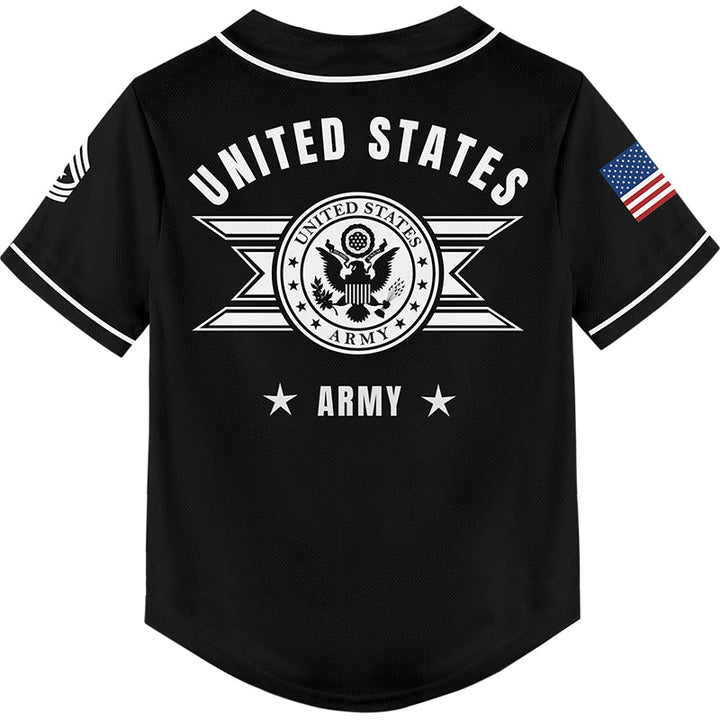 Custom Black U.S Army Military Rank Veteran Name Baseball Jersey