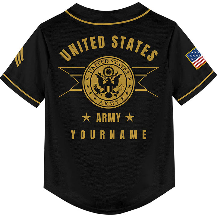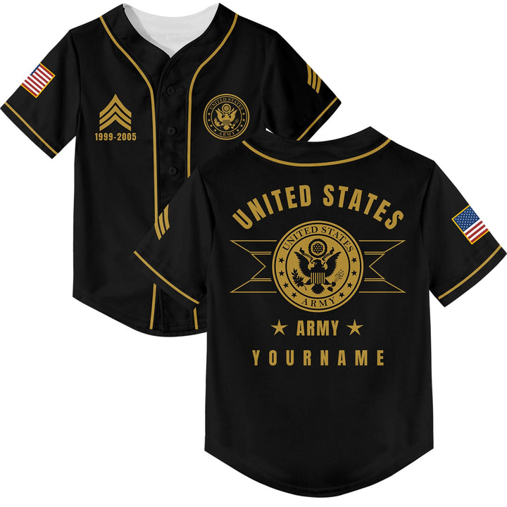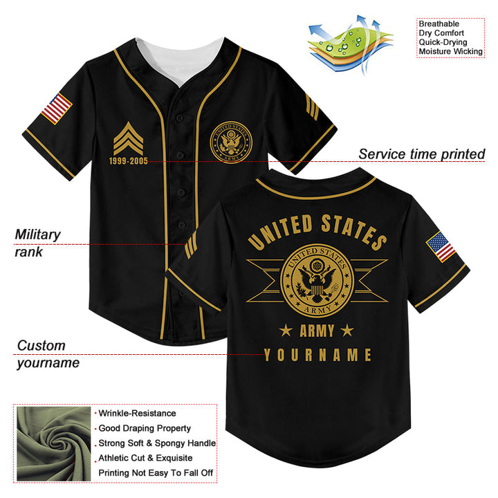 Custom Black U.S Army Military Rank Veteran Name Baseball Jersey