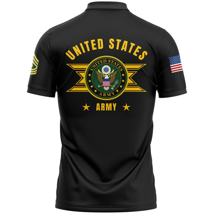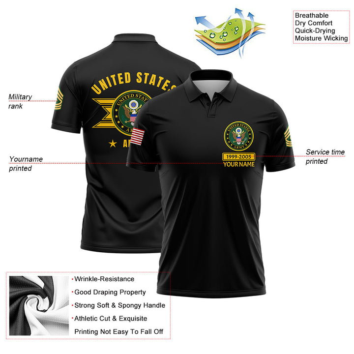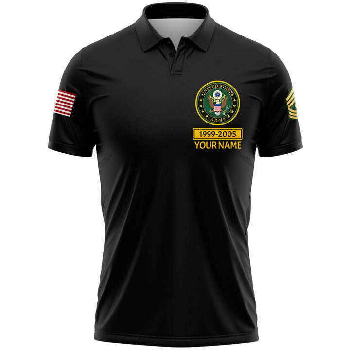 Custom Black U.S Army Military Rank Veteran Name Golf Polo Shirt