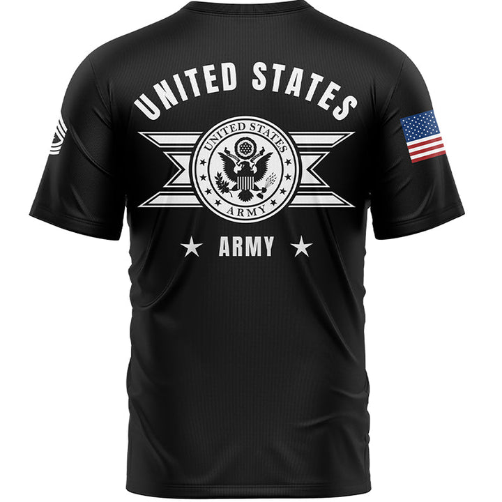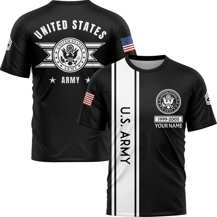 Custom Black U.S Army Military Rank Veteran Name T-Shirt