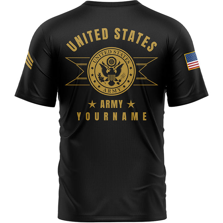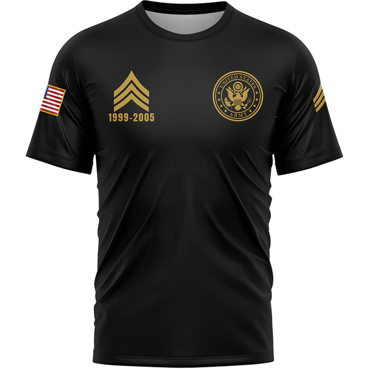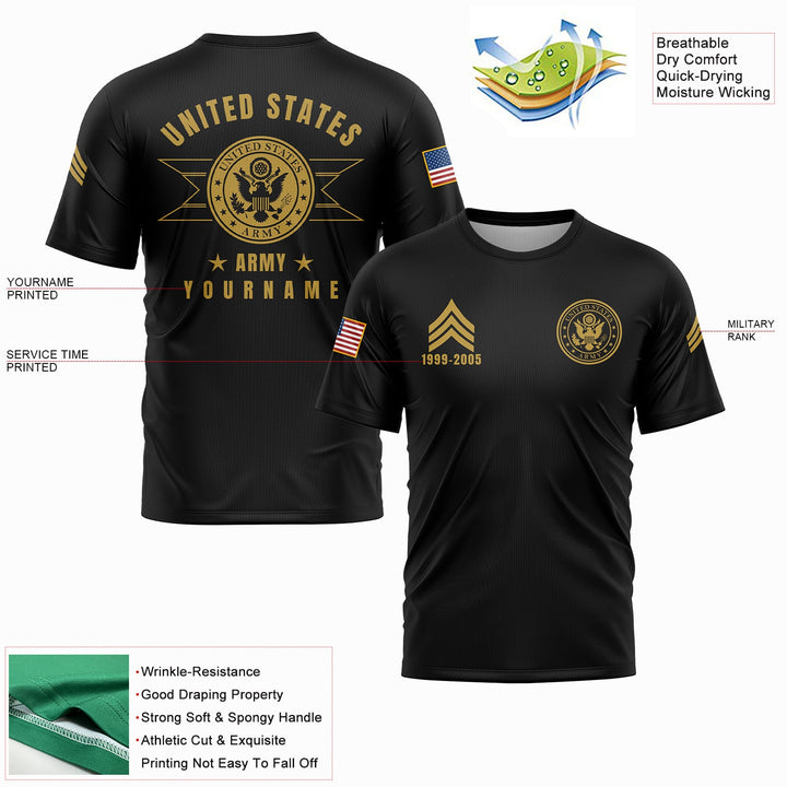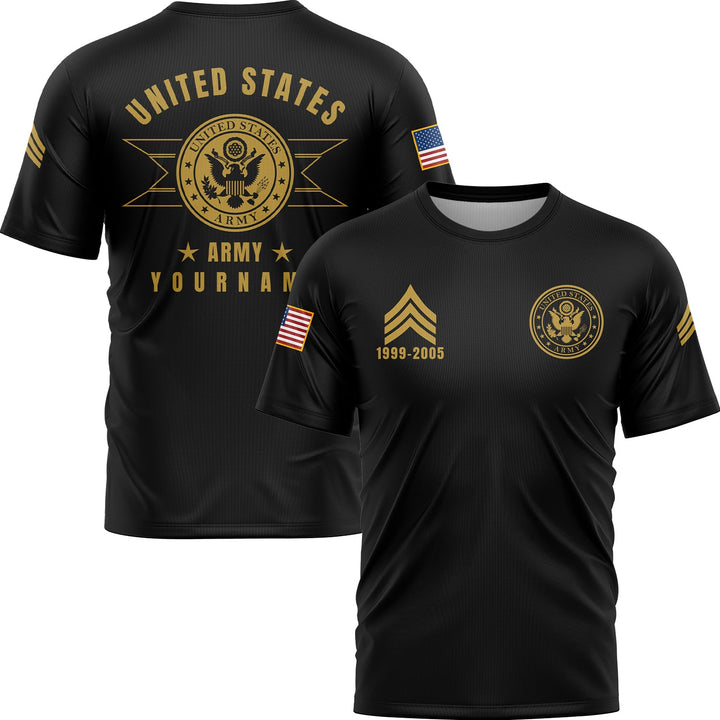Custom Black U.S Army Military Rank Veteran Name T-Shirt