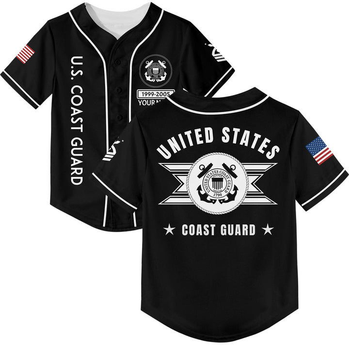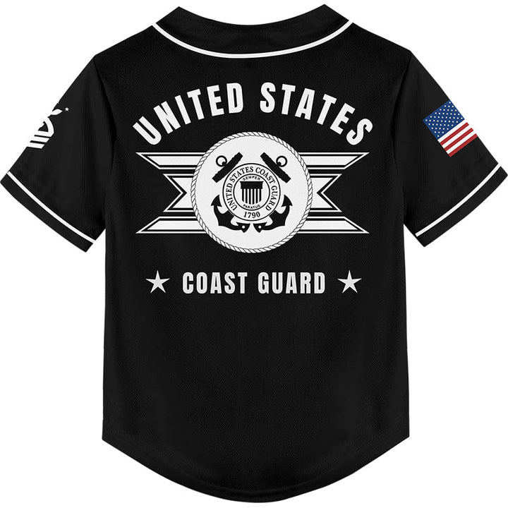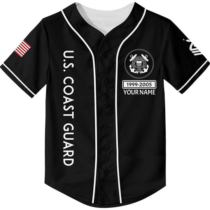 Custom Black U.S Coast Guard Military Rank Veteran Name Baseball Jersey