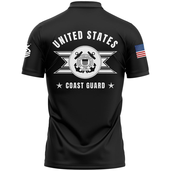 Custom Black U.S Coast Guard Military Rank Veteran Name Golf Polo Shirt