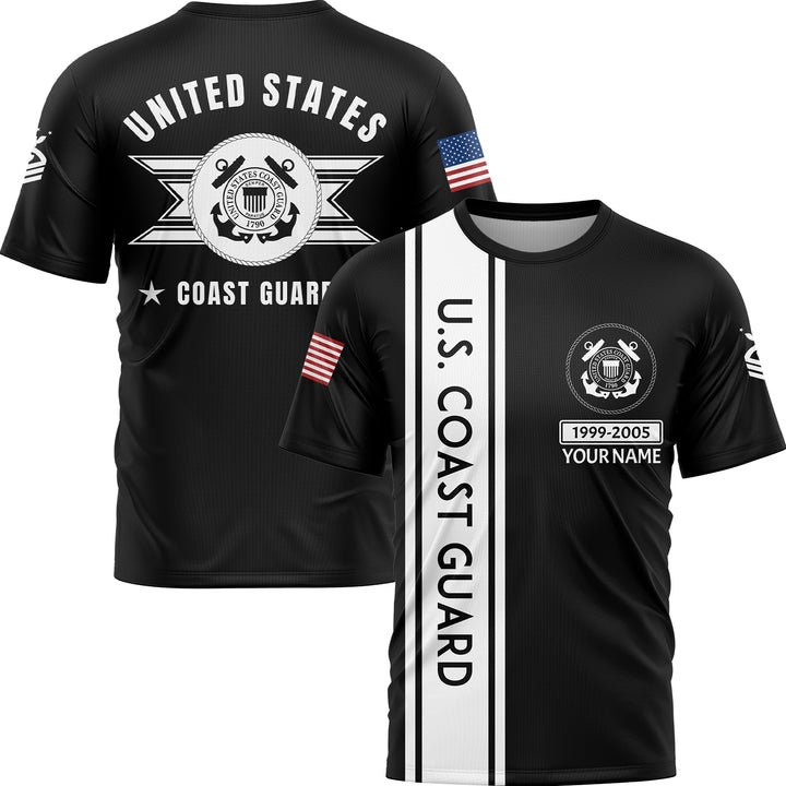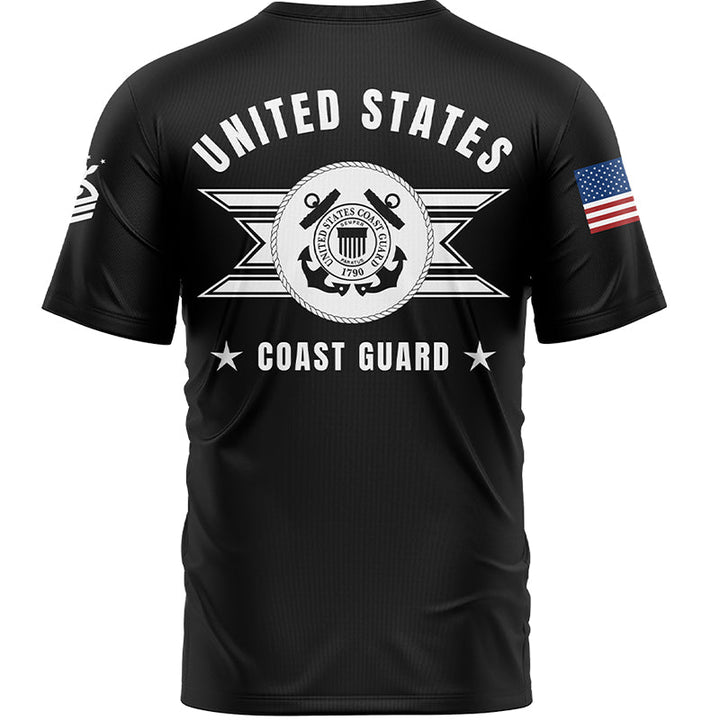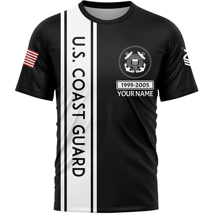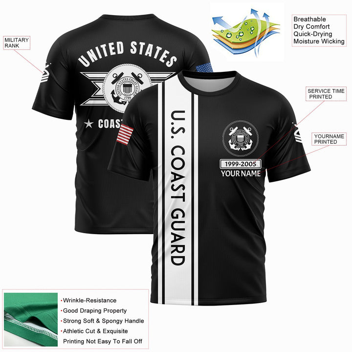 Custom Black U.S Coast Guard Military Rank Veteran Name T-Shirt