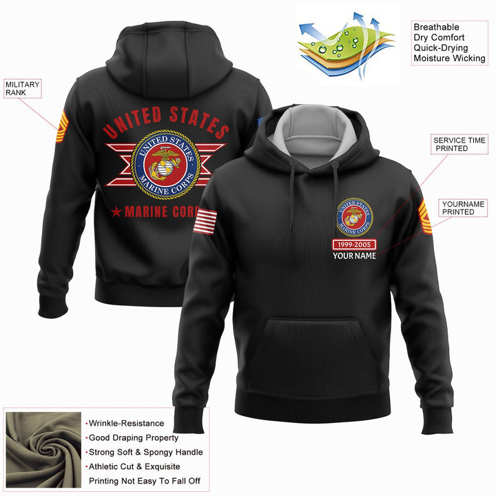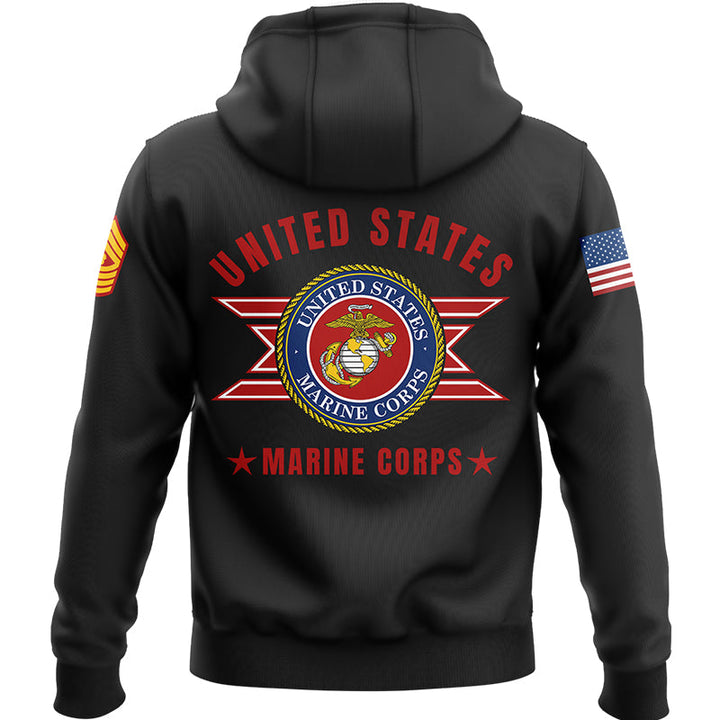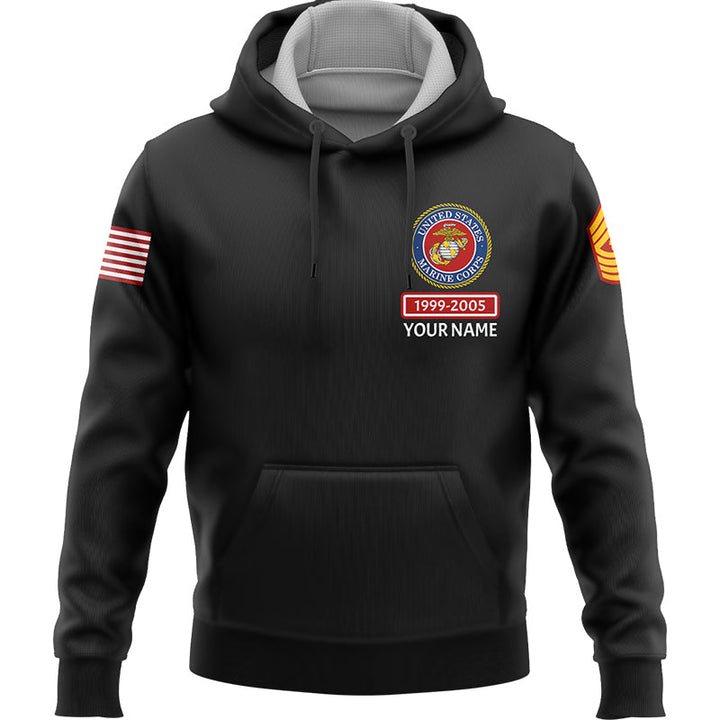 Custom Black U.S Marine Corps Military Rank Name Hoodie