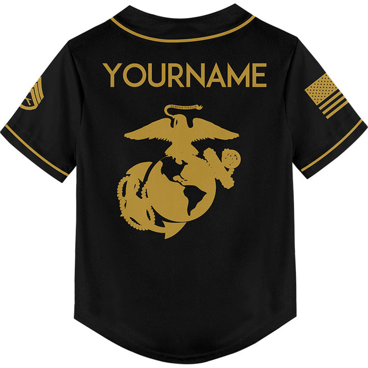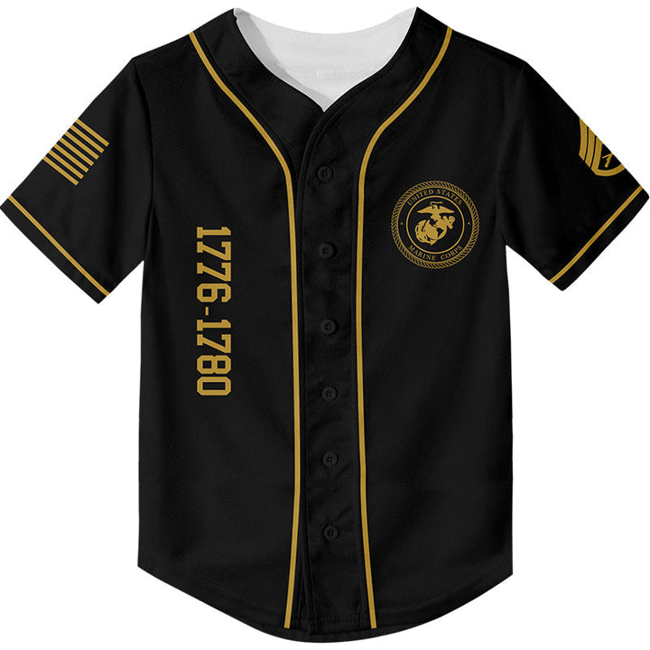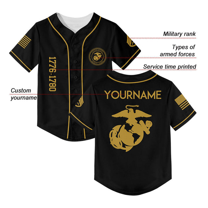 Custom Black U.S Marine Corps Military Rank Veteran Name Baseball Jersey