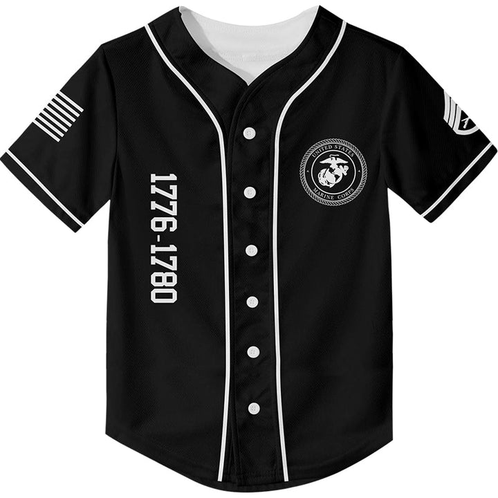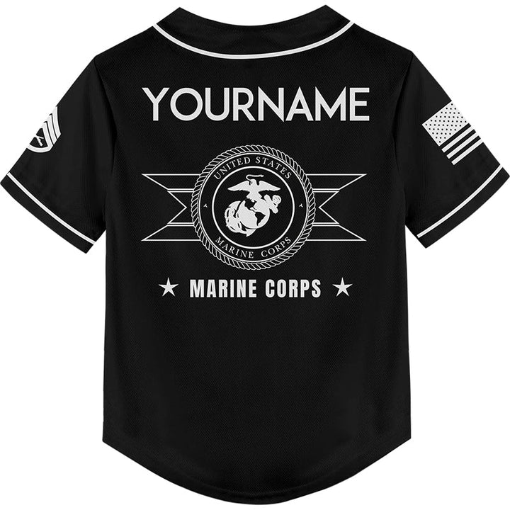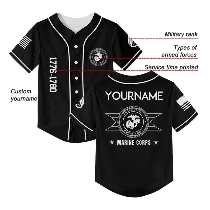 Custom Black U.S Marine Corps Military Rank Veteran Name Baseball Jersey