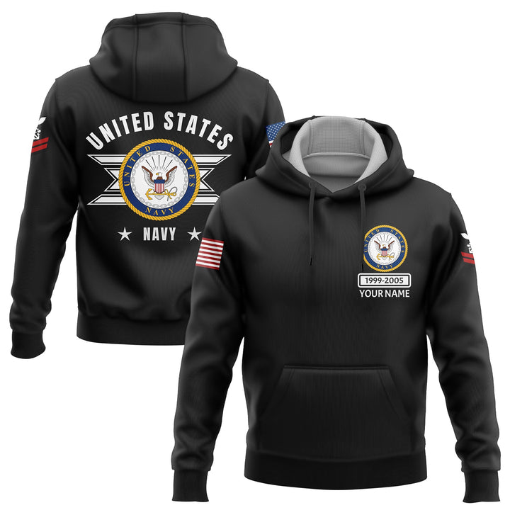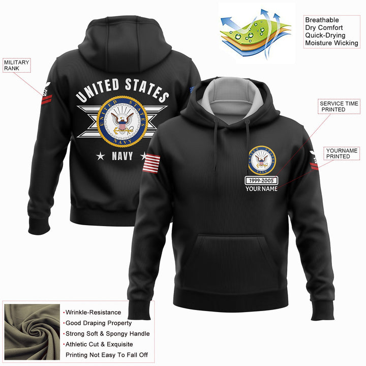 Custom Black U.S Navy Military Rank Name Hoodie