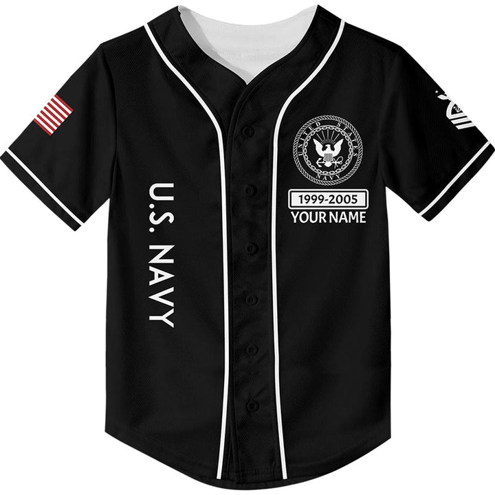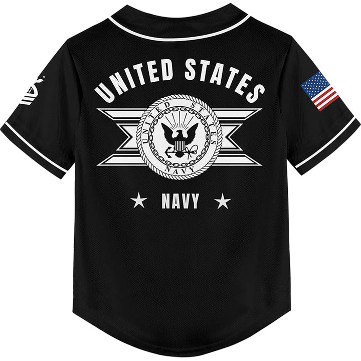 Custom Black U.S Navy Military Rank Veteran Name Baseball Jersey