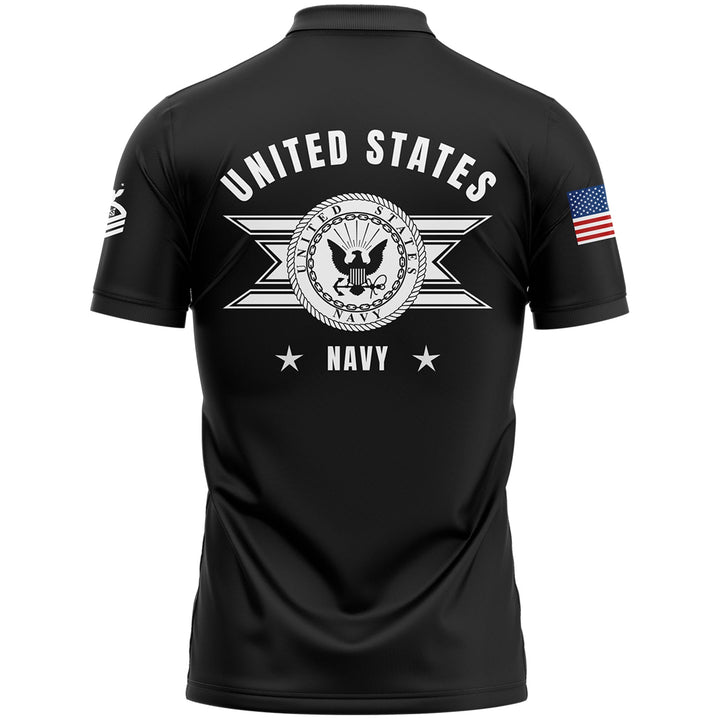 Custom Black U.S Navy Military Rank Veteran Name Golf Polo Shirt