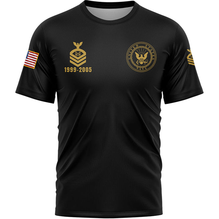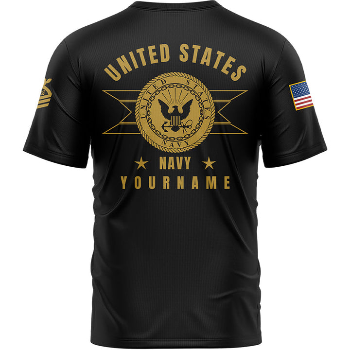 Custom Black U.S Navy Military Rank Veteran Name T-Shirt