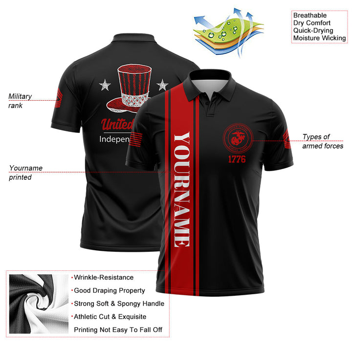 Custom Black United States Military Rank Name Independence Day Golf Polo Shirt