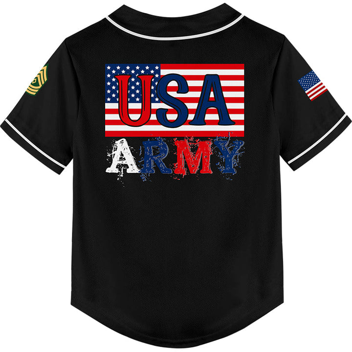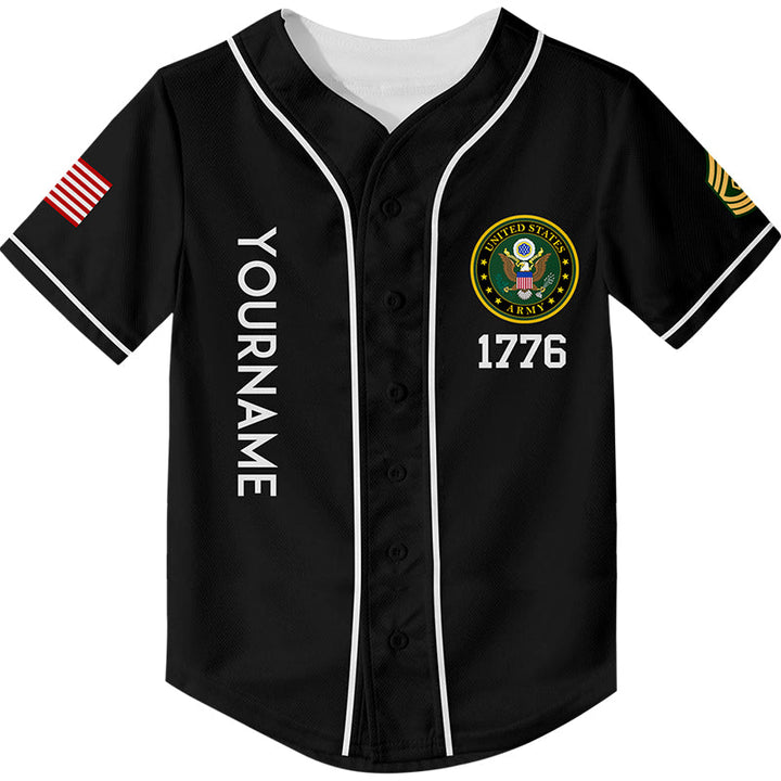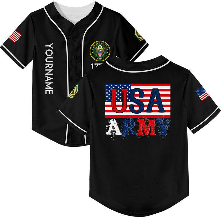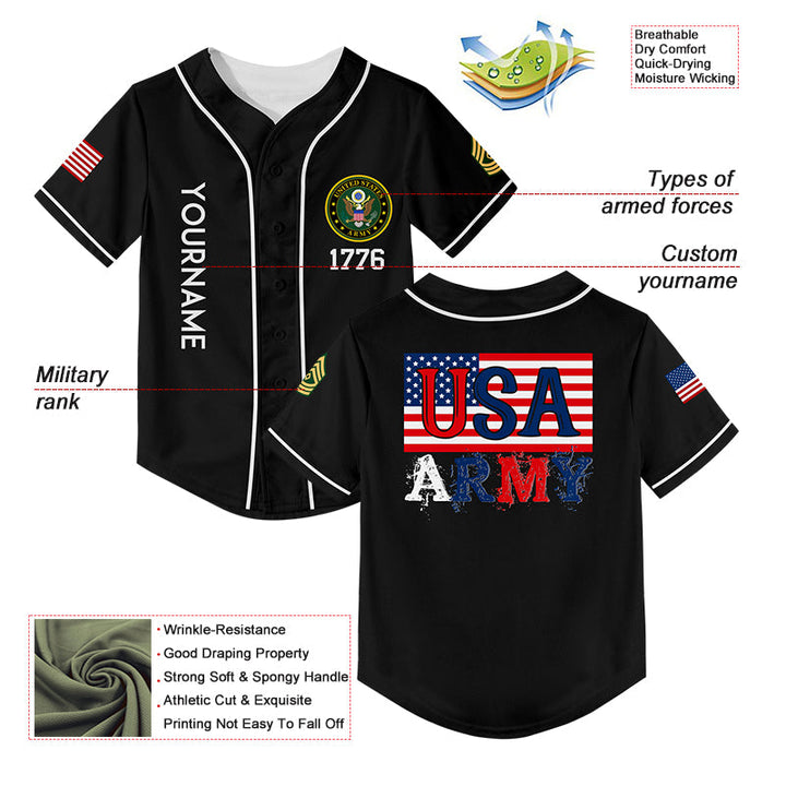 Custom Black USA 1776 American Flag U.S Army Military Rank Name Baseball Jersey