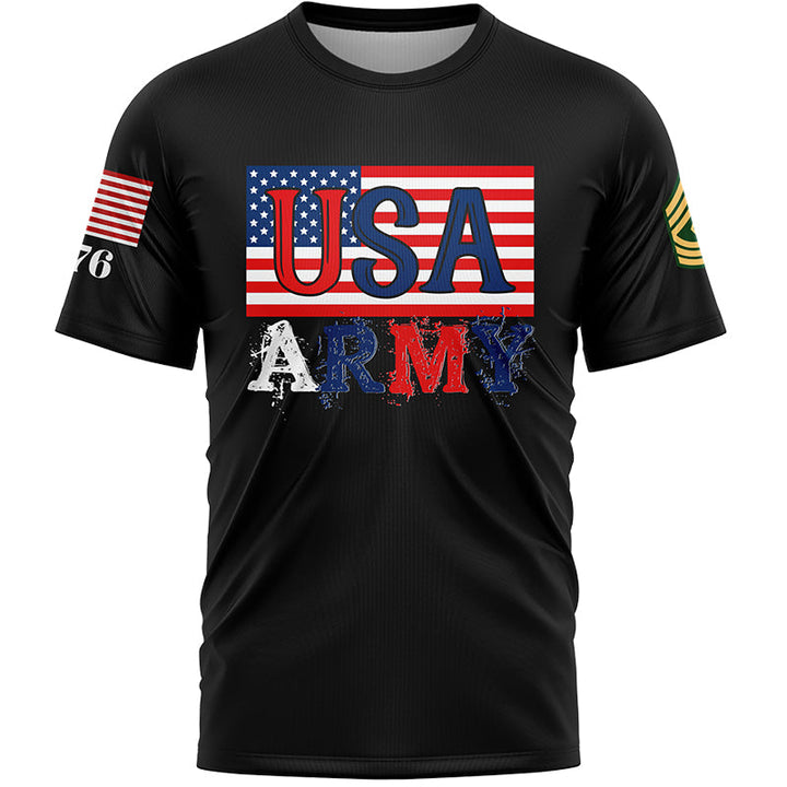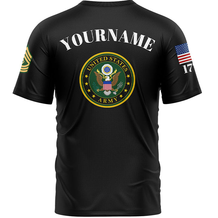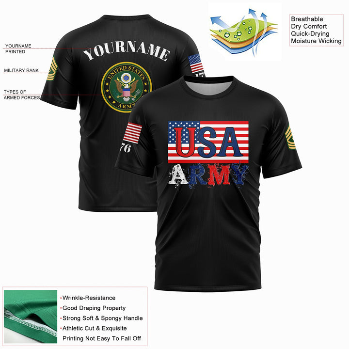 Custom Black USA 1776 American Flag U.S Army Military Rank Name T-Shirt