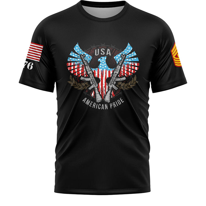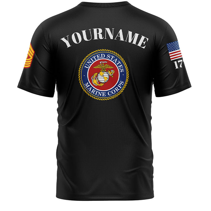 Custom Black USA Eagle Pride 1776 American Flag U.S Marine Corps Military Rank Name T-Shirt