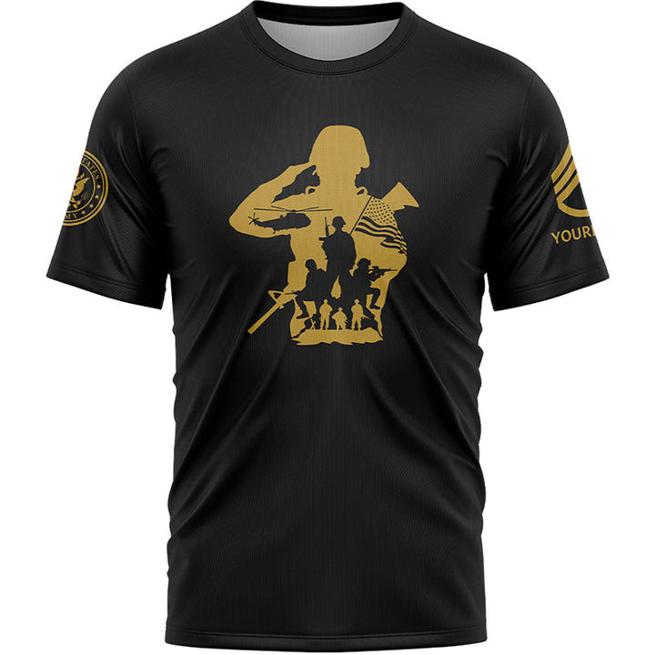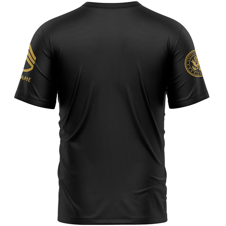 Custom Black USA Military Rank Veteran Name T-Shirt