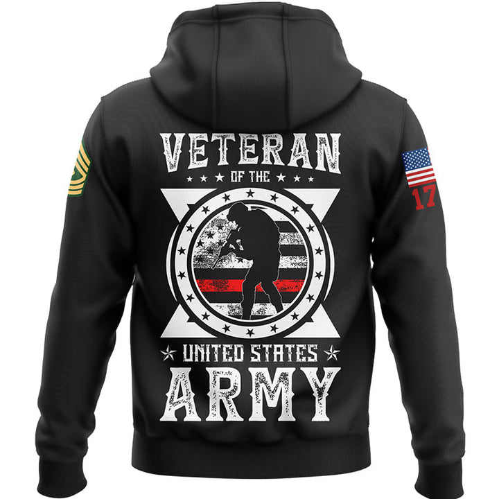 Custom Black Veteran 1776 American Flag U.S Army Military Rank Name Hoodie