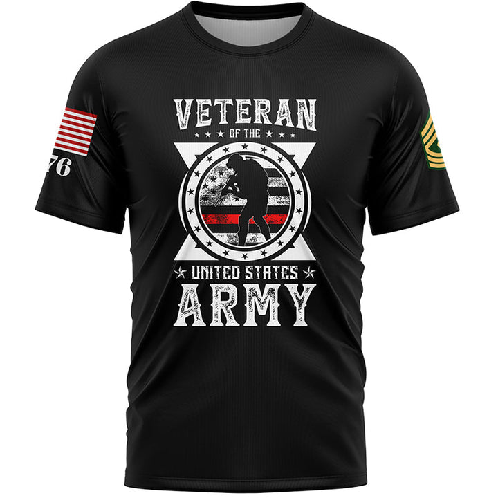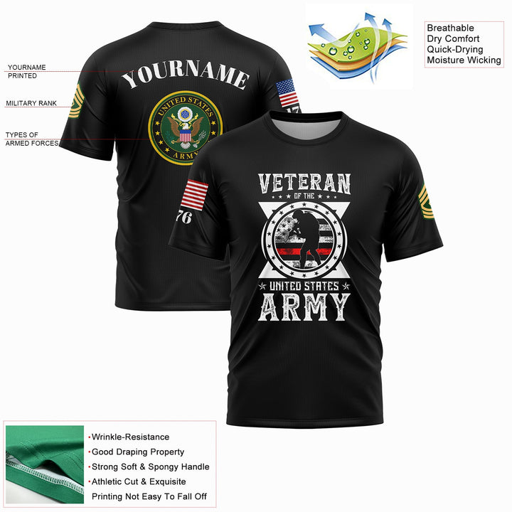 Custom Black Veteran 1776 American Flag U.S Army Military Rank Name T-Shirt